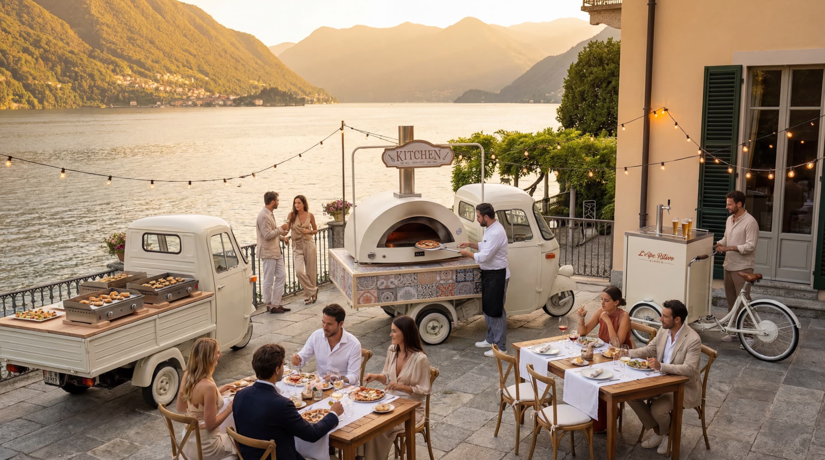Ogni veicolo della nostra flotta è stato accuratamente restaurato e personalizzato per unire l'eleganza del design vintage italiano con la funzionalità di una cucina professionale.